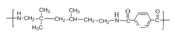 英文名:polytrimethyl hexamethylene terephthalamide;transparent polyamide resin;透明尼龍是無定形聚酰胺,化學(xué)名稱為:聚對苯二甲酰三甲基己二胺。其分子結(jié)構(gòu)式為: