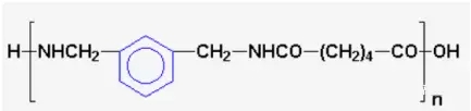 尼龍-mxd6是由三菱氣體化學(xué)公司從m-xylenediamine(mxda)生產(chǎn)的廣泛的聚酰胺的通用名稱。它是由間苯二甲胺mxda與己二酸的縮聚而產(chǎn)生的結(jié)晶聚酰胺。與尼龍6和尼龍66不同,尼龍mxd6是一種脂肪族聚酰胺,其主鏈中含有一個芳環(huán)?;瘜W(xué)結(jié)構(gòu)如下: